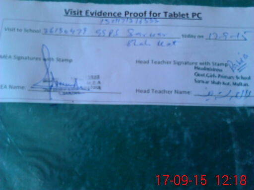 | Attendance Register | Head Teacher | MEA with School | Visit Proof |