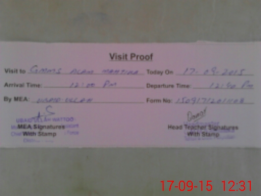 | Certified that this School was Inspected by the Undersigned MEA/DMO Today and the Information Stated Above is as Per Record. | |||||
