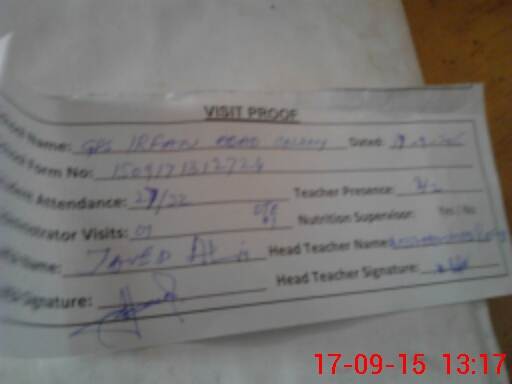 | EMIS Code: 32410467 | Name of School: GPS IRFAN ABAD COLONY | |||