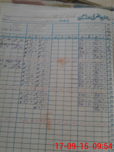 | CNIC | Full Name | Designation | R/C | Absence During Last Calender Month |