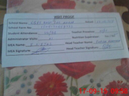 | Attendance Register | Head Teacher | MEA with School | Visit Proof |