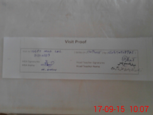 | Attendance Register | Head Teacher | MEA with School | Visit Proof |