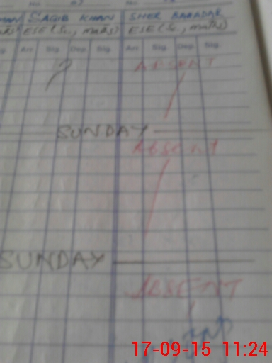 | CNIC | Full Name | Designation | R/C | Absence During Last Calender Month |