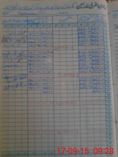 | CNIC | Full Name | Designation | R/C | Absence During Last Calender Month |