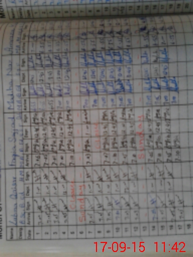 | Monitoring Date: 17-09-2015 | Start Time: 17-09-2015 11:07 AM | End Time: 17-09-2015 11:56 AM | Name of MEA: ZJ**** Iq**** | |