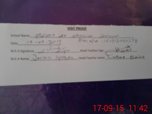 | Attendance Register | Head Teacher | MEA with School | Visit Proof |