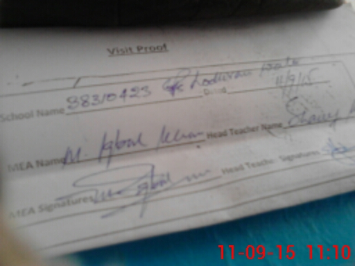 | Attendance Register | Head Teacher | MEA with School | Visit Proof |