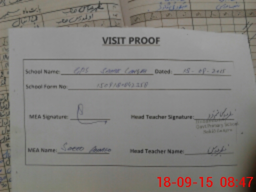 | Attendance Register | Head Teacher | MEA with School | Visit Proof |