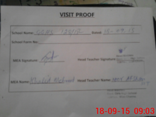 | Attendance Register | Head Teacher | MEA with School | Visit Proof |