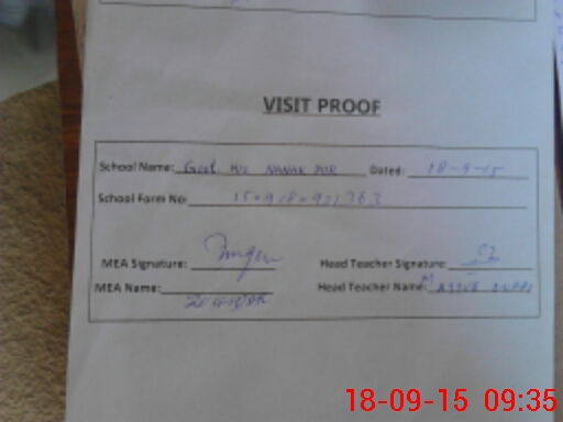 | Attendance Register | Head Teacher | MEA with School | Visit Proof |