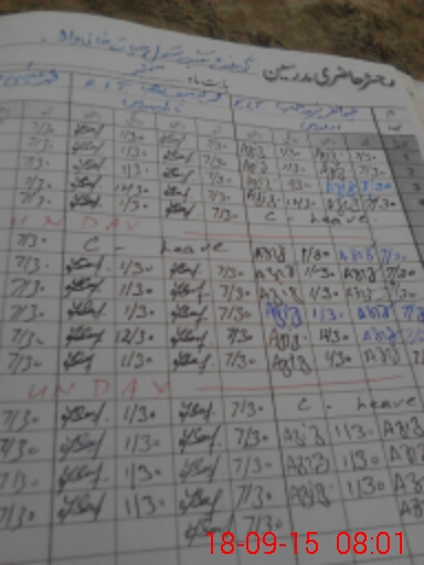 | CNIC | Full Name | Designation | R/C | Absence During Last Calender Month |