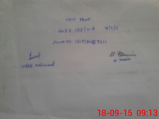 | Monitoring Date: 18-09-2015 | Start Time: 18-09-2015 08:39 AM | End Time: 18-09-2015 10:20 AM | Name of MEA: Is**** Me**** | |