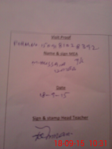 | Attendance Register | Head Teacher | MEA with School | Visit Proof |