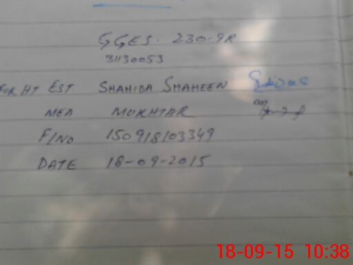 | Monitoring Date: 18-09-2015 | Start Time: 18-09-2015 10:07 AM | End Time: 18-09-2015 10:40 AM | Name of MEA: Mu**** ah**** BN**** 29 | |