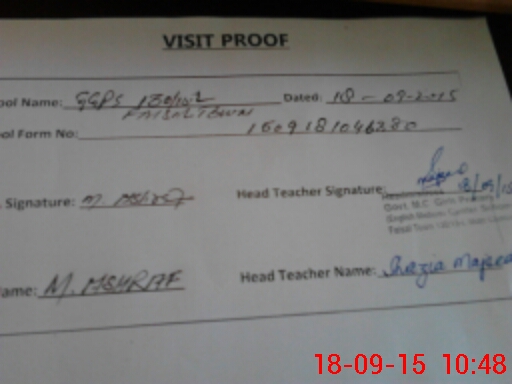 | EMIS Code: 36430275 | Name of School: GGPS MC 130/15-L FAISAL TOWN, MIAN CHANNU | |||