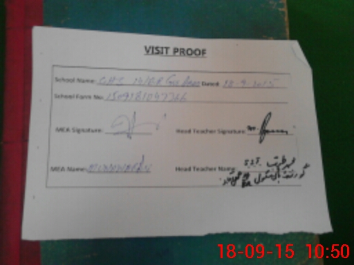 | Attendance Register | Head Teacher | MEA with School | Visit Proof |