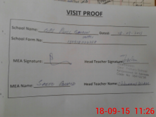 | Attendance Register | Head Teacher | MEA with School | Visit Proof |