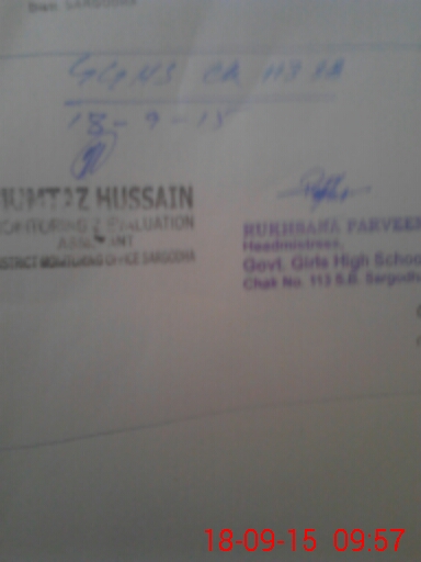 | EMIS Code: 38420056 | Name of School: GGHS CHAK NO.113 SB | |||
