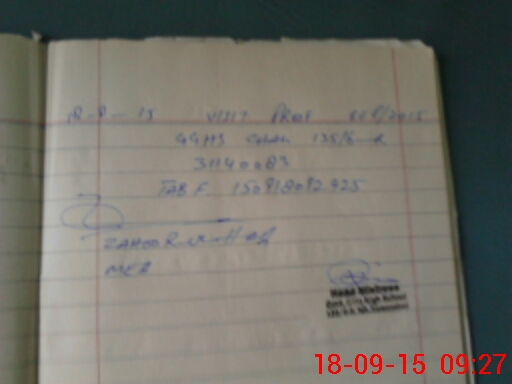 | Monitoring Date: 18-09-2015 | Start Time: 18-09-2015 08:41 AM | End Time: 18-09-2015 09:34 AM | Name of MEA: Za**** BN**** | |