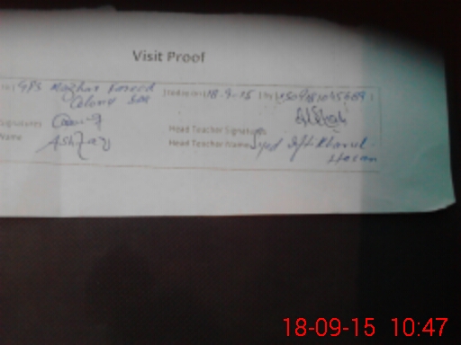 | Attendance Register | Head Teacher | MEA with School | Visit Proof |