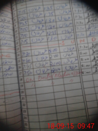 | Monitoring Date: 18-09-2015 | Start Time: 18-09-2015 08:09 AM | End Time: 18-09-2015 10:04 AM | Name of MEA: MA**** HU**** (R**** | |
