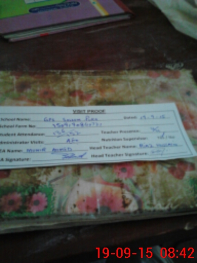 | School Visited by School Health & Nutrition Supervisor (No. of Visits) | 1 | Name1: | KHIZAR HAYAT | Name2: | NIL |