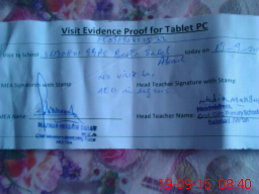 | Attendance Register | Head Teacher | MEA with School | Visit Proof |