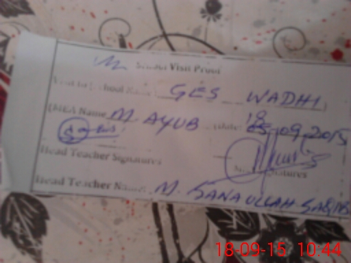 | District: SARGODHA | Tehsil: SHAHPUR | Markaz: WADHI - MALE | Level: Middle | |