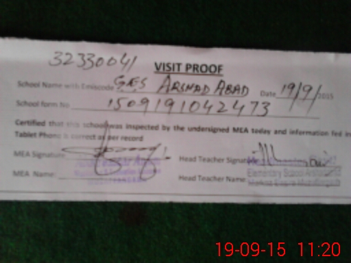 | Attendance Register | Head Teacher | MEA with School | Visit Proof |
