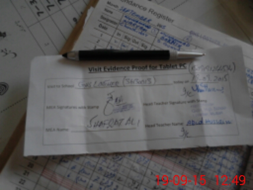 | Attendance Register | Head Teacher | MEA with School | Visit Proof |