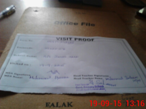 | Attendance Register | Head Teacher | MEA with School | Visit Proof |