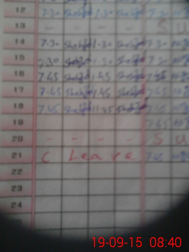 | 38**** | MU**** AH**** | S G | 2 | 3 | 0 | 0 | 0 | 0 | 0 | 0 | 2 | Absent (Un-Authorized) | |