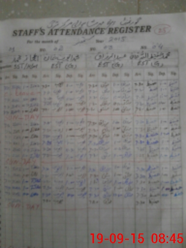 | CNIC | Full Name | Designation | R/C | Absence During Last Calender Month |
