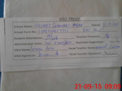 | Attendance Register | Head Teacher | MEA with School | Visit Proof |