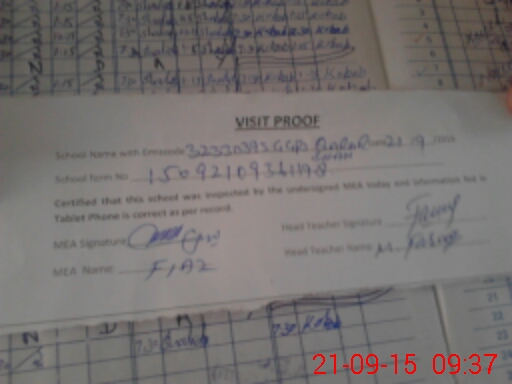 | Attendance Register | Head Teacher | MEA with School | Visit Proof |