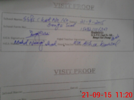 | Attendance Register | Head Teacher | MEA with School | Visit Proof |