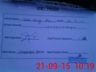| Attendance Register | Head Teacher | MEA with School | Visit Proof |