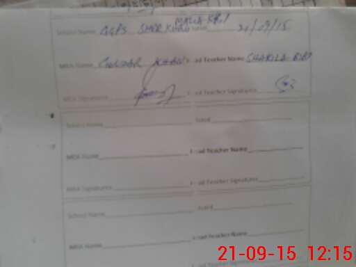 | Attendance Register | Head Teacher | MEA with School | Visit Proof |