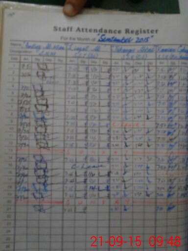 | CNIC | Full Name | Designation | R/C | Absence During Last Calender Month |