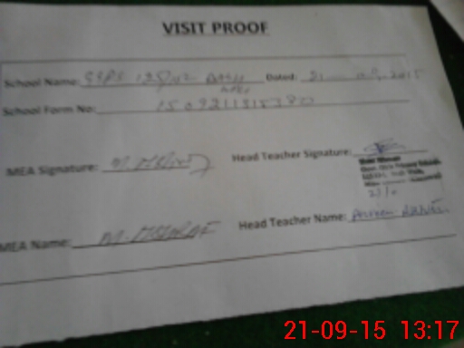 | Attendance Register | Head Teacher | MEA with School | Visit Proof |