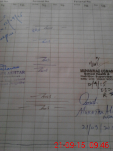 | School Visited by School Health & Nutrition Supervisor (No. of Visits) | Name1: | Muhammad Usman | Name2: | ||
