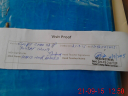 | EMIS Code: 31330576 | Name of School: GGPS CHAK 112/P YOUSAF COLONY | |||