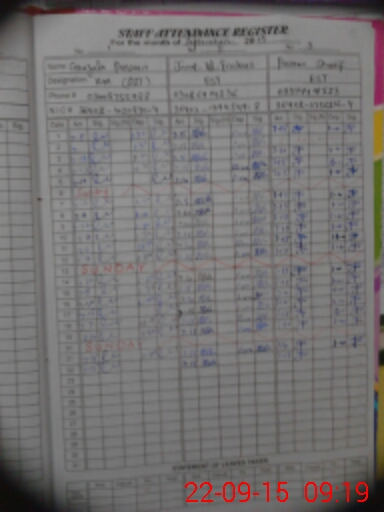 | CNIC | Full Name | Designation | R/C | Absence During Last Calender Month |