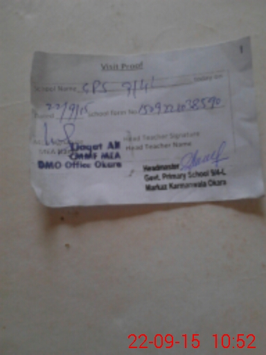 | District: OKARA | Tehsil: OKARA | Markaz: 4/4-L-MALE | Level: Primary | |