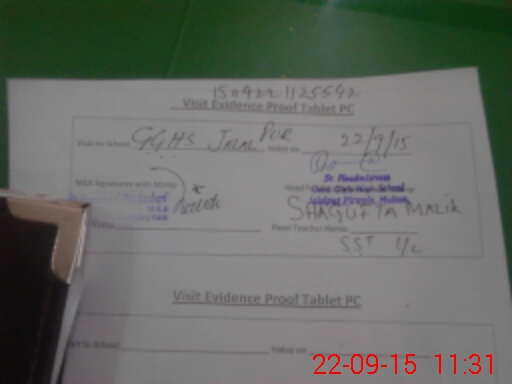 | Attendance Register | Head Teacher | MEA with School | Visit Proof |