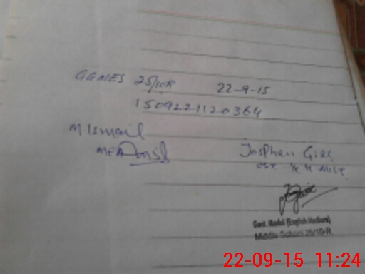 | Monitoring Date: 22-09-2015 | Start Time: 22-09-2015 10:48 AM | End Time: 22-09-2015 11:26 AM | Name of MEA: Z.**** M.Is**** | |