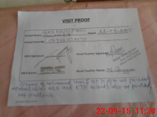 | Remarks (Use Separate Page if Required): THERE IS NO LEAVE APPLICATION AND APPROVAL OF MOHAMMAD SHARIF SST NO DIARY REGISTER PROVIDED NAZAR HUSSAIN JC AND MOHAMMAD RAFIQUE NQ ALSO FOUND ABSENT THERE ATTENDANCE REGISTER COLUMNS WERE LEFT BLANK NSB AND FTF ALL RECORDS NOT AVAILABLE NOT PROVIDED | |||||