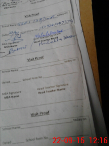 | Attendance Register | Head Teacher | MEA with School | Visit Proof |
