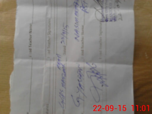 | Name: FO**** AZ**** Designation: (School Headmaster's/Headmistress's) PST Phone/Cell Number: 03**** |