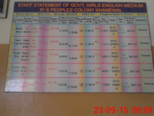 | EMIS Code: 36420350 | Name of School: GGPS PEOPLES COLONY, KHANEWAL | |||